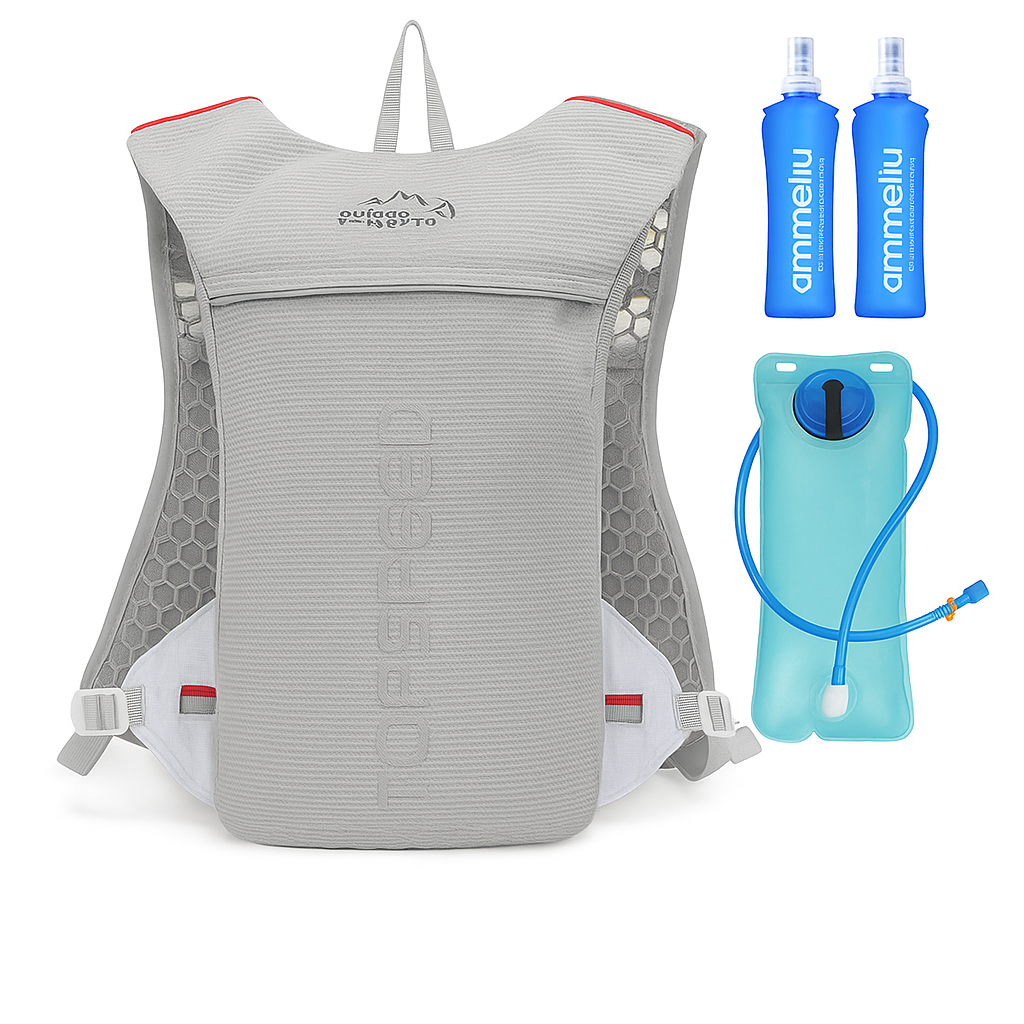 - Capacity: 5L (vest) + 2L water bladder